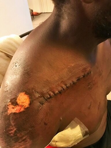 The moments after facing oncoming traffic are a blur. The next memory I have is laying on the road, bleeding severely, with my friend holding my head as we await for an emergency response unit. The accident left me with a comminuted right clavicle, scapula fracture, broken ribs, and a collapsed lung, all limiting my range of motion on the right side. I received a chest tube to re-expand my lung and remove excess fluid. I also had surgery to repair my clavicle with a plate and 6 screws. After 4 extremely painful days in the hospital, I am on the road to overcoming this setback and look forward to sharing my journey with you.